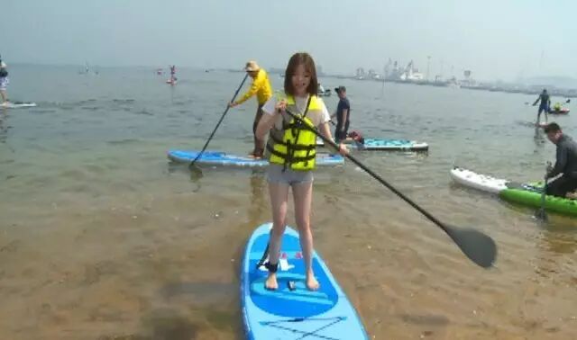 远处的这位小美女,是参加此次浆板活动的唯一一位女孩子,看到她瘦弱的身体在大海中飘摇却坚定,真的是力与美的最好体现。