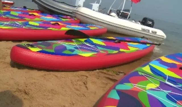 国外客户定制桨板,中空结构,轻便耐用,方便携带,充气即可使用。适合大众健身、大众参与 。